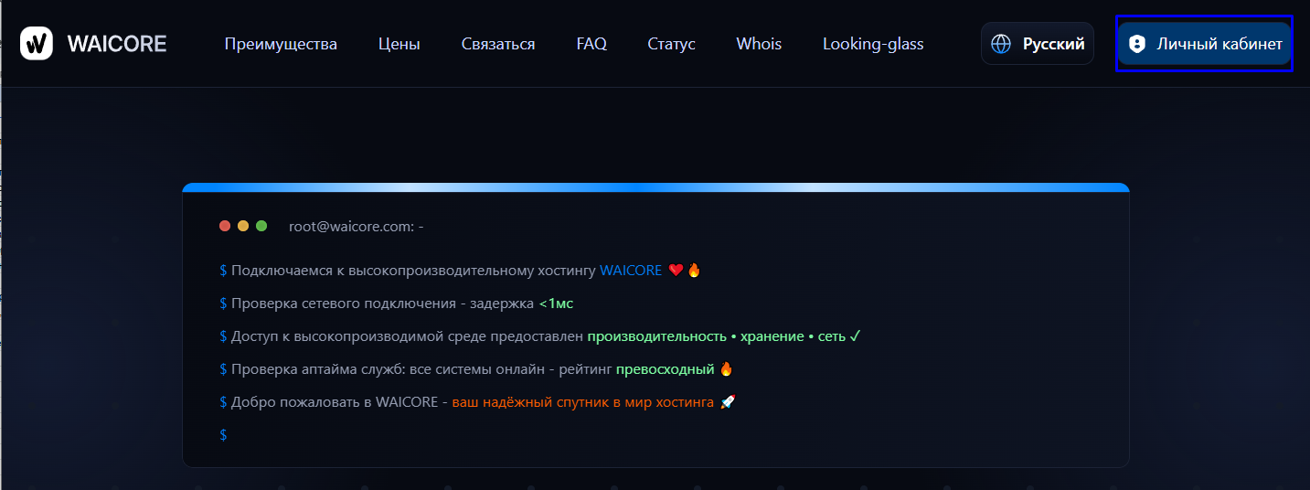 🎉 Готово! Теперь вы можете пользоваться панелью WAICORE.