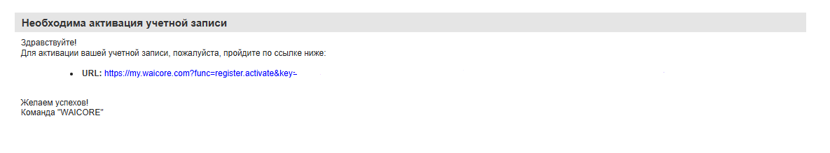 Регистрация в WAICORE