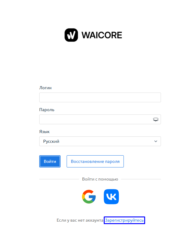 - Откройте страницу входа my.waicore.com