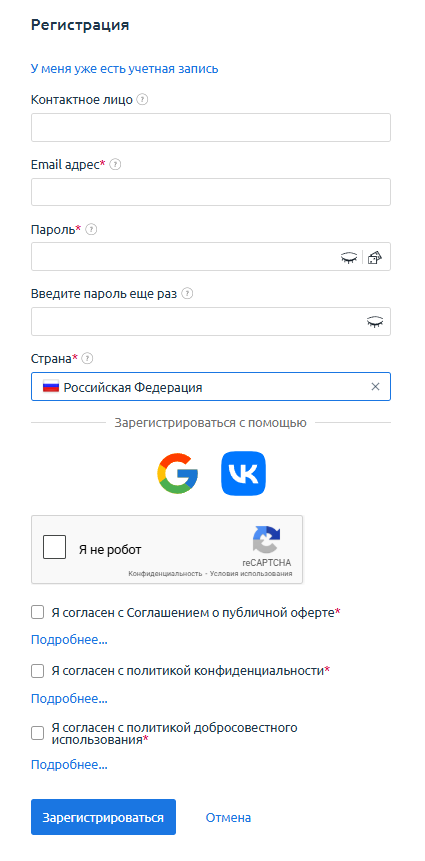 После этого нажмите: Зарегистрироваться